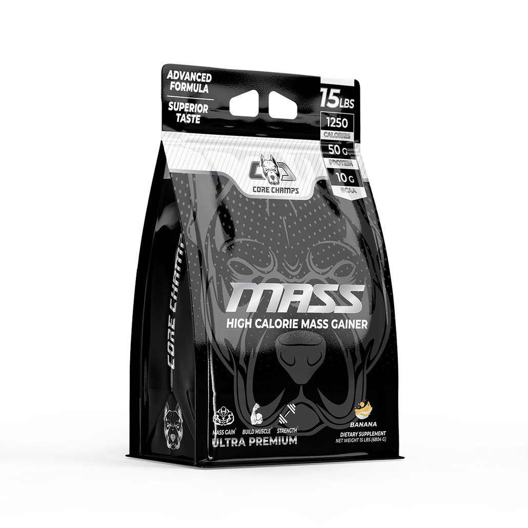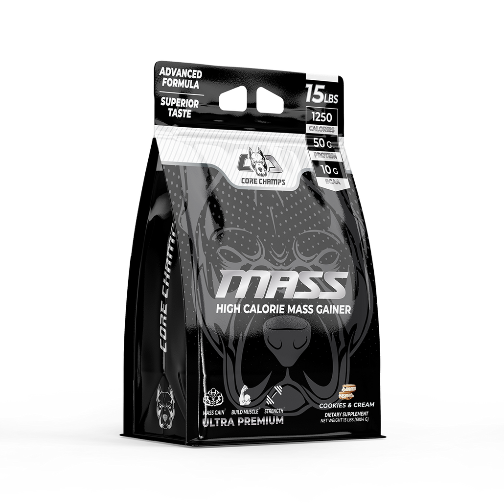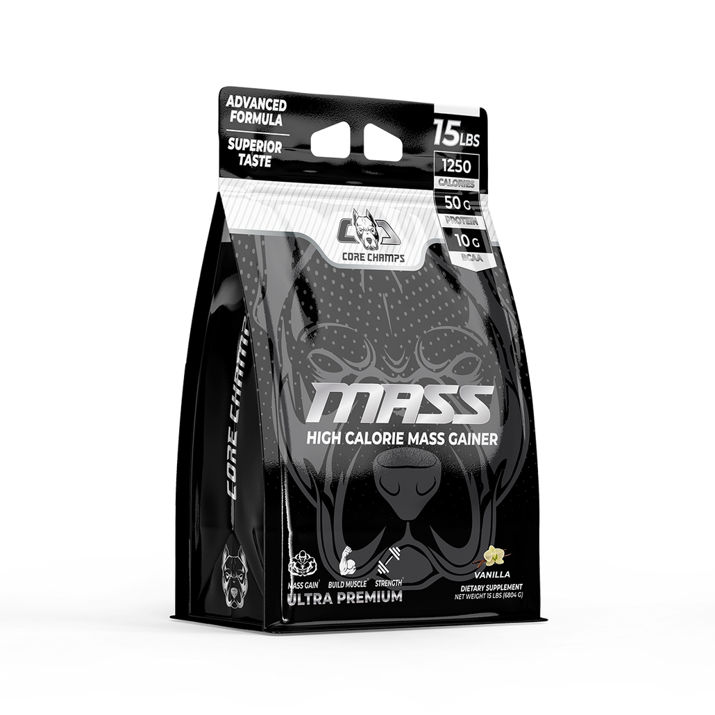 CORE CHAMPS MASS Gainer is made with 100% whey protein that delivers a massive 1250 calories when mixed with 18-20 oz. of water. CORE CHAMPS MASS Gainer contains 50-gram high-quality protein, quickly digested carbohydrates, and other minerals. This advanced mass gainer has been designed for any individual who has a tough time adding size, is in their bulking phase, or wants to break through their strength plateaus.